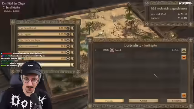 03:16:48Die Session beginnt im Spiel Stronghold Crusader. Der Streamer startet eine Mission im 'Pfad der Zeit'-Modus, eine wirtschaftliche Kampagne. Die anfängliche Karte als winzig beschrieben, zwingt zu einer kompakten und effizienten Strategie. Der Fokus liegt auf dem Aufbau einer starken Wirtschaft mit vielen Bäckereien, die Gold generieren. Eine wichtige Taktik ist der Kauf von Eisen, um mit Triböcken die feindlichen Vorräte zu stören und Ressourcen zu blockieren, was erfolgreich durchgeführt wird und den Gegner schwächt.