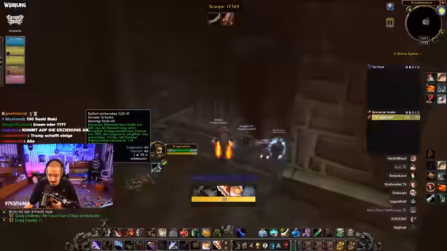 05:50:14Der Streamer erkundet einen neuen Spielmodus, der ihm großen Spaß bereitet. Er konzentriert sich auf das Besiegen von Bossen und Mobs in einer Instanz, wobei er besondere Aufmerksamkeit auf das Positionieren der Gegner legt. Eine zentrale Strategie ist das Anziehen der Mobs an eine Treppe, um einen Boss, Leon, sicher herauszulocken. Der Streamer lobt die hohen Schadenswerte der Rogue-Klasse in Bezug auf mehrere Ziele, betont aber auch, dass die Ausrüstung (Gear) einen spürbaren Unterschied im Damage ausmacht, vor allem im Vergleich zu Spielern mit besserer Ausrüstung.
