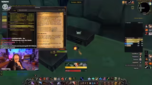 04:33:22Der Stream konzentriert sich auf die Durchführung einer World of Warcraft Quest im nördlichen Teil der westlichen Pestländer. Es geht speziell um eine Undercover-Mission, die die Annäherung an einen Charakter in der Verkleidung erfordert. Strategien für den erfolgreichen Abschluss werden diskutiert, darunter der Einsatz von Ablenkungsmanövern wie das Tragen einer Flagge, um die Aufmerksamkeit der Gegner auf sich zu ziehen. Die Route des Ziels und mögliche Spawn-Punkte der Gegner analysiert, um die Missionsziele wie die Ermordung des Vaters zu planen.