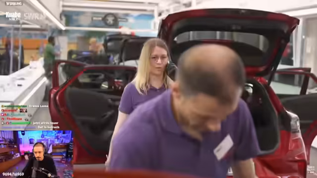 01:23:49Für den weiteren Verlauf des Streams wird eine Abstimmung über die zu sehende Dokumentation durchgeführt. Die Optionen sind eine Doku über Bundeswehr-Minentaucher, eine legendäre Fahrschule-Doku von 2013 oder eine aktuelle SWR-Doku über Deutschlands größte Autowaschanlage. Nach der Abstimmung beginnt die Betrachtung der gewählten Doku über die Autowaschanlage in Stuttgart.