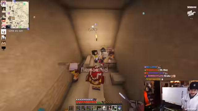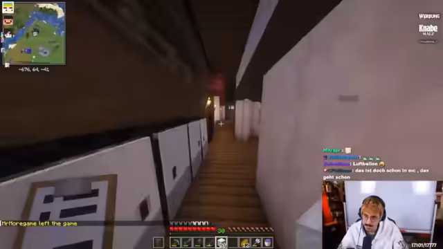07:56:49Es wird berichtet, dass Willi auf dem Rave getötet wurde. Er wurde hochgejagt und dann von Papa Platte gekillt, als er seine Sachen holen wollte. Die anderen Spieler haben auf ihn eingeprügelt, und Papa Platte hat ihn mit einem Schlag getötet, als er bereits wenig Leben hatte. Seine Sachen haben sich daraufhin verteilt. Dieser Vorfall wird als 'Schlimmste, was er kratzieren kann' bezeichnet, und die Spieler sind entsetzt über Willis Tod. Es wird auch erwähnt, dass Willi nicht in Minecraft ist. Erli wird um eine Sekunde Zeit gebeten, lehnt aber ab und verabschiedet sich, da er sechs Stunden 'Revi' ertragen musste. Er freut sich, bei den 'Säulen' normale Menschen zu sein und einen Ausgleich zu haben. Nick baut derweil Flächen, die als 'geil' und 'wichtig' empfunden werden. Es wird auch erwähnt, dass Tamina aufgemuntert wurde, da es ihr nicht gut geht, da sie 'crazy allein' auf dem Projekt ist. Die Abwesenheit von LIA und Mazat wird als schade empfunden.