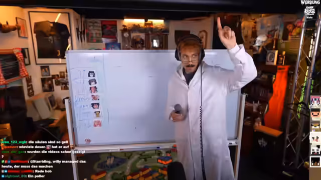 01:56:17Der Streamer verbringt eine Stunde mit der Vorbereitung eines Meetings und betont die Wichtigkeit der Konzentration bei der Arbeit. Eine humorvolle Auseinandersetzung mit Rewi, der in Bauuniform auftaucht, sorgt für Lacher. Es wird über die Anwesenheit anderer Streamer wie Nick, Repaz, Eli und Kroko für das Meeting diskutiert. Kroko, der kürzlich aus China zurückgekehrt ist und unter Jetlag leidet, wird voraussichtlich später dazustoßen. Die Stimmung im Team wird als leicht entgleisend wahrgenommen, weshalb Kommunikation als Schlüssel zur Problemlösung betrachtet wird. Es wird auch über die Lieferung von Paketen gesprochen, wobei Willi scheinbar leer ausgeht, was zu weiteren humorvollen Sticheleien führt. Der Streamer startet eine zweite Instanz von Minecraft, um weiterzubauen, und beklagt die unübersichtliche Gestaltung des Whiteboards.