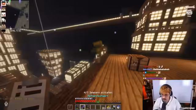 07:34:40Die Suche nach einem Nether-Portal gestaltet sich schwierig, da einige Spielerbasen, wie die der Pietz, scheinbar kein funktionierendes Portal besitzen. Es entsteht Verwirrung, als die Base der Pietz als kaputt oder als 'Altersheim' bezeichnet wird. Währenddessen kommt es zu einer unerwarteten Voice-Chat-Interaktion, bei der Balou und ein anderer Spieler gleichzeitig einem Call beitreten, was zu humorvollen Missverständnissen führt. Es wird über die Möglichkeit gesprochen, 10 bis 15 Leder zu besorgen, und die Anwesenden scherzen über einen rollstuhlgerechten Eingang. Die Diskussion dreht sich kurz um WoW und das bevorstehende Hardcore-WoW-Event, wobei die Begeisterung für das Spiel und die Wahl der Charakterklassen geteilt wird. Es wird auch über die strategischen Vorteile von Jägern und Hexenmeistern im Hardcore-Modus gesprochen. Die Spieler freuen sich auf das Event und die Zusammenarbeit, wobei sogar ein 'Vertrag' für die Teilnahme ins Spiel gebracht wird.