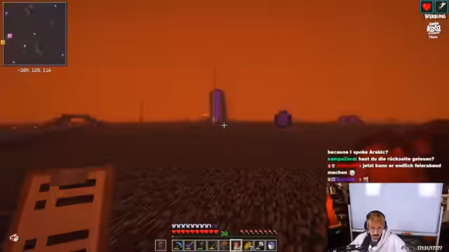01:38:14Der Streamer HandOfBlood diskutiert über die Ästhetik seiner Minecraft-Bauten und betont, dass Funktionalität für ihn über Ästhetik steht. Er vergleicht seine Bauweise mit dem Spiel Satisfactory, wo der Fokus ebenfalls auf effizienten Farmen liegt. Obwohl er davon ausgeht, dass 90% der Minecraft-Spieler seine Bauten als hässlich empfinden würden, findet er sie persönlich gut und vergibt dafür eine Bewertung von 10 von 10. Dies führt zu einer kurzen Unterbrechung, in der er versucht, einen Witz über das englische Wort für 'Rennen' zu machen, der jedoch nicht verstanden wird. Anschließend wird die Diskussion von Lobreden auf die 'Säulen' durch Basti und Joe Croft unterbrochen, gefolgt von einem Zitat von Wolfgang Grupp über Wollproduktion, das in einem humoristischen Kontext verwendet wird.