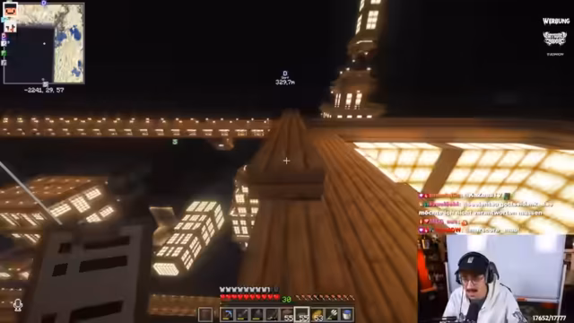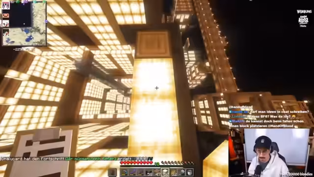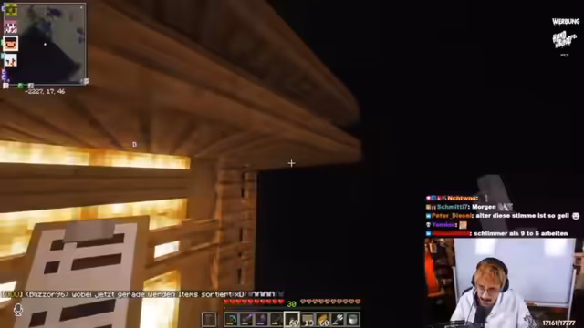 06:17:00Es wird über die Lautstärke des Streaming-PCs gesprochen und die Optik des Empire State Buildings aus Tokio bewundert. Die Unterhaltung dreht sich kurz um Mina, die im Chat aktiv ist, und es wird über die Häufigkeit von Eiern im Spiel diskutiert, wobei Meek als Experte genannt wird. Nick hat sein erstes liegendes Bauwerk fertiggestellt, was auf Begeisterung stößt. Tamina äußert Langeweile und Schmerzen, woraufhin im Chat nach Lösungen gesucht wird. Es wird über den Bau einer Brücke und die benötigten Laternen gesprochen. Eine kurze Verärgerung über falsche Schilder im Spiel wird geäußert, da der Chat sich über Kleinigkeiten aufregt. Die Stimmung wird als 'tough crowd' beschrieben, und es wird scherzhaft über Placements und den Reichtum der Streamer gesprochen, wobei die 'Säule des Heus' erwähnt wird.