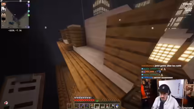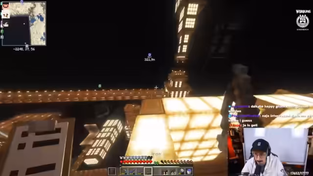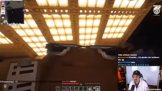 04:27:48Der Sprecher lässt Koko erst einmal ankommen, da der Bauprozess mental herausfordernd ist und er selbst gestern Schwierigkeiten hatte. Er vermutet, dass Koko in den nächsten drei Stunden eventuell wieder nach China zurückkehren möchte. Es wird kurz ein Kommentar zum „Alltagsrassismus“ im Twitch-Chat gemacht. Der Sprecher widmet sich dem Platzieren von Fichtenstufen und Lampen. Es wird über die Möglichkeit gesprochen, die Happy Ghasts zu benennen und die Vorteile von Nutz-Dinos in Ark verglichen mit der langsamen Einführung von Hilfsorganismen in Minecraft diskutiert. Die Einführung der Elytra wird als bahnbrechend erwähnt. Der Sprecher fragt Willi um Genehmigung, das Dach seines Gebäudes zu entfernen und eine Etage höher zu bauen, um eine Brücke zu seinem eigenen Gebäude bauen zu können. Willi stimmt zu. Es wird über den Namen eines anderen Projekts gesprochen, der gut gelungen sei, aber befürchtet wird, dass Metashi ihn leaken könnte. Ein englischsprachiger Streamer wird gehört, der über das Event spricht und es als „hate-watch“ bezeichnet, wobei er sich Death-Clips erhofft. Es wird über den Erfolg von Onlyfanks 1 diskutiert und ob BWL gecleared wurde. Die Zusammensetzung der Raid-Teilnehmer bei Onlyfanks 1 (10 Schwitzer, 30 Normalos) wird analysiert und als „wack“ empfunden, da die Schwitzer die Neulinge tragen. Der Sprecher betont, dass dies bei ihrem Event nicht der Fall sein wird.