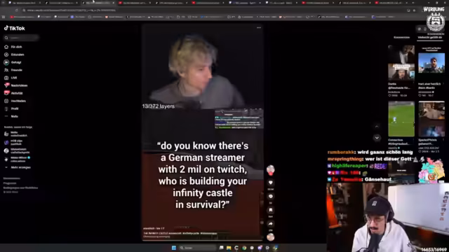 04:47:28Reapers wird für seine Detailverliebtheit gelobt, auch wenn die anderen der Meinung sind, dass niemand darauf achten wird. Der Sprecher betont seinen Stolz auf diese Details und kritisiert die fehlende Gamer-Stolz seiner Kollegen, die von Netherrack-Skulpturen reden, aber nicht auf Maserungen achten. Er stellt klar, dass er sich nicht in „11.000 Netherrack fahren“ reinreden lässt. Cengiz wird angesprochen und gefragt, ob er am WoW-Event teilnehmen möchte, wobei der Sprecher ihn nicht unter Druck setzen will und vorschlägt, dies später zu besprechen. Es wird klargestellt, dass die Teilnahme am Event das Streamen voraussetzt. Der Sprecher widmet sich dem Platzieren von Fichtenholzbrettern und reflektiert über die mathematische Natur des Bauens. Die Müller-Milch-Challenge wird erwähnt, wobei die Müllermilch aus politischen Gründen kritisiert wird, da das Unternehmen in der Vergangenheit mit der NPD in Verbindung gebracht wurde und es neue Kontroversen gibt. Es wird empfohlen, sich vor dem Kauf zu informieren. Der Sprecher kämpft mit der Platzierung einer Treppe und fragt den Chat um Hilfe. Er vermutet, dass Koko, ähnlich wie er selbst, emotional in den Keller gehen könnte, da der Bauprozess sehr anspruchsvoll ist und sich stark vom „stumfen Grind“ unterscheidet. Er betont, dass jeder Bereich in Minecraft, den sie bearbeiten, ein völlig anderer ist, von der Technik über den Grind bis hin zum filigranen Bauen mit Detailverliebtheit.