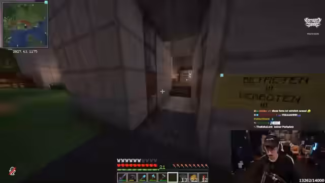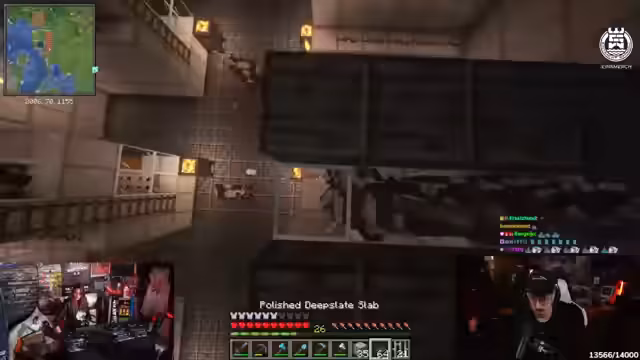 03:13:40Nachdem ein lauter Knall im Hintergrund zu hören ist, wird eine Katastrophe bekannt. Ein kompletter Bauabschnitt einer Cobblestone-Farm ist durch eine Explosion zerstört worden. Der Streamer gibt an, drei Stunden an diesem Projekt gearbeitet zu haben und nun vor dem Nichts zu stehen. Die vermuteten Täter im Chat wurden zwar nicht gebannt, aber der Streamer sieht den Grund für das Versagen des Bauwerks in einem falsch platzierten Observer-Block, was ihn verärgert. Dennoch stellt er den Wiederaufbau in Aussicht.