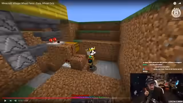 04:37:19Es folgt ein Gespräch über Minecraft und Path of Exile. Um 21 Uhr soll ein Path of Exile Early Access Stream stattfinden, den sich der Streamer zusammen mit Kalle ansehen möchte. Es wird über die erreichten 13.000 Subs gesprochen. Der Streamer sucht nach einer effizienten Milchfarm in Minecraft, wobei verschiedene Videos und Designs geprüft werden. Er möchte eine automatische Farm bauen, bei der Kühe gemolken werden, ohne dass er manuell eingreifen muss. Es wird überlegt, wie man Villager in einer Crop Farm dazu bringen kann, Weizen anzubauen, ohne Brot wegzunehmen, indem man ihr Inventar mit Samen füllt. Der Streamer erklärt, wie man mit einem Browser-Add-on Emotes im Twitch-Chat besser nutzen kann. Er gibt Tipps, wie man mit dem Chat umgeht und sich nicht von negativen Kommentaren stressen lässt. Anschließend wird ein Minecraft-Video analysiert, in dem eine automatische Weizenfarm gezeigt wird. Der Streamer versucht, die Redstone-Logik hinter dem Item-Sorter zu verstehen, gibt aber schließlich auf und beschließt, die Farm einfach nachzubauen. Es wird erwähnt, dass das Kupferhaus fertiggestellt werden muss und die Wellpappe alle ist. Der Streamer plant, in Trial Chambers Kupfer zu organisieren und eine Crop Farm für Weizen zu bauen, um die Kühe zu füttern.