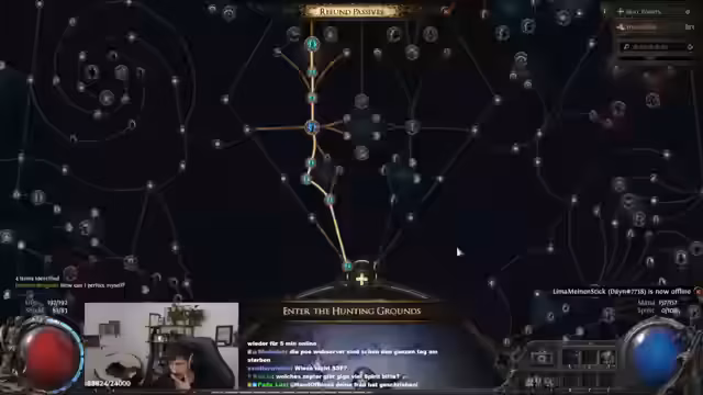 00:00:51HandOfBlood startet den Stream mit Mikrofonproblemen und entschuldigt sich für ein Rülpsen. Er thematisiert die Klassenwahl für den Hardcore-Run in Path of Exile mit seinen Mitspielern. Es wird diskutiert, ob jeder eine andere Klasse spielen oder ob die Klassen gerollt werden sollen. Max möchte gerne Minion Master spielen, was auch HandOfBloods Wunschklasse ist. Sie überlegen, ob es problematisch wäre, wenn mehrere die gleiche Klasse spielen, insbesondere wegen der Gear-Verteilung. HandOfBlood schlägt vor, dass man sich gegenseitig Loot gibt, der für die eigene Klasse nicht spezifisch ist. Es wird beschlossen, dass alle einen Präfix-Sinn-Namen mit 'Lima' verwenden. Die Streamer stellen ihre Charaktere vor, darunter Sorceress, Infernalist und Witch. Es wird vereinbart, dass das Projekt endet, wenn HandOfBlood stirbt. Die Gruppe will sich zur Stadt vorarbeiten und überlegt, ob die Klassen gerollt werden sollen. HandOfBlood hat eine Sorc gewählt, während andere Witch und Ranger spielen. Er erklärt, dass er zu Hause streamt, weil seine Freundin Corona hat und er eine neue Kamera hat.