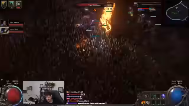 05:31:31Der Streamer erklärt, dass man in Hardcore traden kann und es auch Solo-Self-Found gibt. Er selbst spielt Hardcore und wechselt nach dem Tod zu Softcore. Er testet, ob er die kleinen Viecher für den Aufspieß nutzen kann und stellt fest, dass sie gut zum Clearen sind. Er sucht nach einem Zepter mit Skeleton Warriors, Minion-Leben oder -Schaden und bittet den Chat um Hilfe. Er kauft einen Zepter, um den Boss zu besiegen, da er die Warrior braucht. Er geht kurz weg, da sein Hund Aufmerksamkeit braucht. Er sucht nach Spirit und Grants und findet einen Zepter mit Skeleton Warrior, aber nur Level 2. Er findet einen Deal für einen Zepter und macht einen Handshake. Er kauft Items mit Feuerresistenz und Leben und bereitet sich auf den Boss vor. Die Gruppe besiegt den Boss mit dem Flammenwerfer. Anschließend wird überlegt, ob Kalle noch da ist, oder ob er eingeschlafen ist. Es wird überlegt, wer an Draven gestorben ist. Die Gruppe fährt mit dem Minecart weiter und stellt fest, dass Kalle wieder da ist. Der Streamer verrät seinen Standort, falls er stirbt.