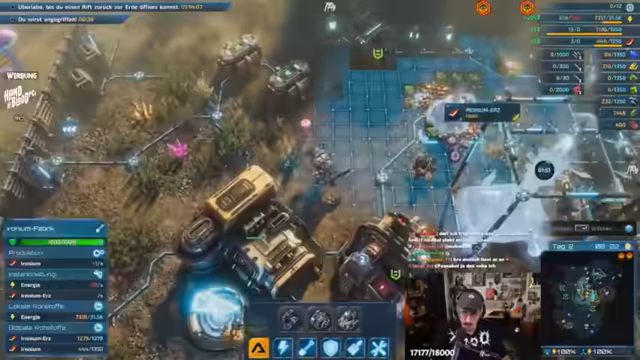 04:14:40Die Priorität liegt auf dem Bau von Standardgebäuden wie einer Kommunikationszentrale und dem Hauptquartier Stufe 2, die beide das Ressourcen Ironium erfordern. Parallel dazu werden mehrere Ironium-Farmen zur Grundstoffgewinnung errichtet, um die Expansion der Basis sicherzustellen. Die erste Verteidigungslinie wird aktiviert, da sich gegnerische Einheiten nähern und bereits eine Wand zerstört wurde. Der Fokus liegt auf der Sicherung der Ressourcen und der Vorbereitung auf die ersten Angriffe.
