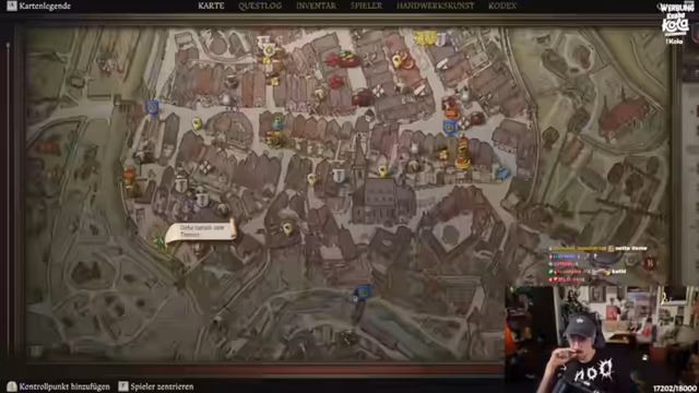 05:54:05Zurück in der Schenke nach dem Kampf gegen Goliath, erläutert ein Ortsansässiger, dass der Geist zwischen dem Pferdemarkt und dem Bezirk des Adligen Radek umhertrieb. Er erwähnt zwei spezifische Schenken: das 'schwarze Pferd', ein Treffpunkt für Bergarbeiter, und ein großes Badehaus. Beide Orte könnten Geist aufgespürt haben. Der Streamer entscheidet sich, zuerst eine Wache aufzusuchen, um die Situation zu klären, da er sich unsicher ist, ob er wegen des Kampfes gesucht wird.