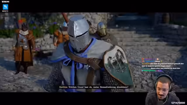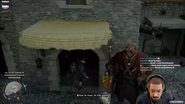 04:16:30In der Stadt Hernan besucht der Streamer verschiedene Händler und Geschäfte. Er erkundet einen Handelshof, wo man Handelswaren verschicken kann, und einen Laden für Ausrüstung und Rezepte. Dort kauft er unter anderem eine kleine Tasche zur Erweiterung des Inventars und Rezepte für Nahrung. Außerdem besucht er eine Schmiede, wo er seine Ausrüstung, wie einen Helm, mit Materialien verfeinern und verbessern kann, um seine Stärken zu erhöhen.
