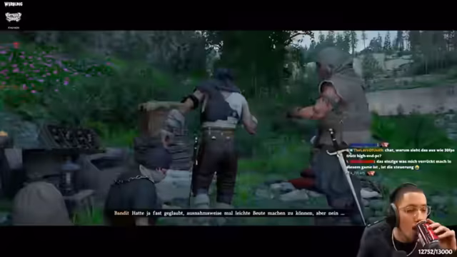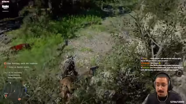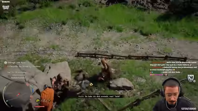 05:35:36Die Erkundung der Spielwelt und das Verfolgen von Questen stehen im Mittelpunkt. Der Spieler vergleicht das Reitergefühl und das Verhalten der NPCs positiv mit Red Dead Redemption. Er interagiert mit der Welt, indem er unter anderem Zäne zerstört und versucht, sich auf bestimmte Weisen zu bewegen. Das Gameplay wird als dynamisch beschrieben, mit unvorhergesehenen Ereignissen wie dem plötzlichen Verschwinden von Tieren. Der Spieler findet viel Spaß im Erkunden, sammelt Ressourcen wie Eisenerz und Frühlingsrosen und stellt fest, dass die Welt reich an Interaktionsmöglichkeiten ist.