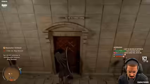 03:30:59Der Streamer erkundet die Spielwelt, sammelt Gegenstände wie den Beltran Plattenhelm und den Hanisch, und stößt auf verschiedene Sammelobjekte. Er stellt fest, dass das Spiel Fallen und Gefahren birgt und die Interaktion mit der Umgebung oft mehrere Schritte erfordert, wie das Auswählen von Objekten und Drücken bestimmter Tasten. Die Benutzeroberfläche wird als "aus der Hölle" beschrieben, da die Navigation und Ausrüstung kompliziert und unübersichtlich ist.