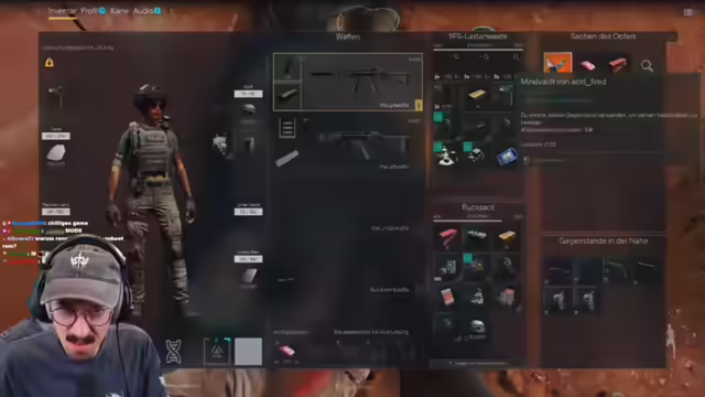 04:35:26Nach dem schnellen Tod im vorherigen Raid wird beschlossen, direkt wieder einzusteigen. Es wird überlegt, ob man nur mit Messern spielen soll, aber dann verworfen. Stattdessen wird eine andere Map ausgewählt und die Ausrüstung angepasst. Es wird ein fertiges MP5-Kit ausgewählt. Es wird ein ICQ-Sound gehört, der nostalgische Gefühle weckt. Es wird erklärt, wie man Waffen und Ausrüstung schnell über ein Terminal auswählen kann. Es wird betont, dass der erste Raid das Beste war, was man je erlebt hat. Es wird ein Stream Together mit Puzzle vorgeschlagen. Es wird über die Map gesprochen und festgestellt, dass es eine Zone gibt. Es wird überlegt, ob man nachts spielen soll. Es wird Map-Knowledge ausgetauscht und erklärt, wie man auf der Map markieren kann.