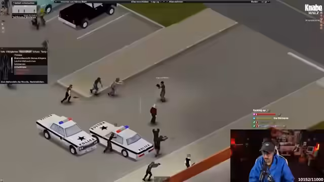05:51:05Die Spieler tauschen Taktiken aus, wie man Zombies abhängen kann, indem man geduckt läuft und Zäune überwindet. Ein Spieler findet eine Polizeistation. Die Spieler versuchen sich zu koordinieren. Ein Spieler findet einen Schutzhelm und andere nützliche Gegenstände. Sie diskutieren über die Wichtigkeit, eine Zeitung zu lesen oder einen Zeitungshut zu basteln. Ein Spieler versucht, ein Auto zu knacken. Sie tauschen sich darüber aus, wie man Zombies ohne Waffen töten kann, indem man sie schubst, tritt und auf den Kopf tritt. Sie sprechen darüber, wie man den Kofferraum eines Autos untersucht. Die Spieler haben Schwierigkeiten, sich zu finden, da sie permanent von Zombies verfolgt werden. Sie tauschen Tipps aus, wie man Zombies abhängen kann, indem man normal läuft, sich duckt und über Zäune geht. Die Spieler suchen nach Ressourcen und versuchen, zu überleben.