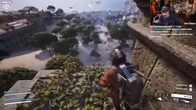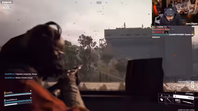 05:19:45Der Streamer und sein Team befinden sich in einem intensiven Kampf. Raketen fliegen, und eine riesige Spinne taucht in der Ferne auf. Es wird diskutiert, ob die Drohnen Raketen abfeuern und wie man die Spinne am besten angreifen könnte, wobei ein Achievement für Reichweitenschaden erwähnt wird. Plötzlich nähert sich eine Kamikaze-Drohne, was für Verwirrung und Beschuss sorgt. Die Atmosphäre wird als "insane geil" beschrieben, besonders durch die Kombination aus der Spinne und den Raketen. Es wird überlegt, die Spinne aus der Ferne mit einer Sniper zu bekämpfen, während die beeindruckende Grafik und Weitsicht des Spiels gelobt werden. Währenddessen werden weitere getriggerte Drohnen und Explosionen in der Umgebung bemerkt, die auf die Randale des Streamers zurückgeführt werden.