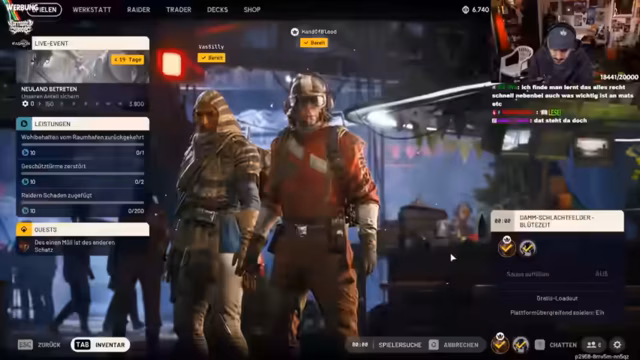 05:29:45Nach der Runde wird die Möglichkeit besprochen, Steam-Profile von besiegten Spielern einzusehen und diese zu melden. Es wird festgestellt, dass man fast Level 2 erreicht hat und 11.000 EP gesammelt wurden. Neue Funktionen wie der Codex und der Battle Pass, hier als "Merritt" bezeichnet, werden freigeschaltet. Der Streamer zeigt sich begeistert von einem neuen Helm und spekuliert über die Langzeitentwicklung des Spiels. Er plant, seine maximale Ausdauer zu erhöhen und die Werkstatt zu verbessern. Es wird über die Schadenswirkung verschiedener Waffen und die Notwendigkeit, Spielzeit zu investieren, um Details zu verstehen, gesprochen. Die Möglichkeit, neue Maps freizuschalten, wird erwähnt, wobei der Streamer die aktuelle Map als gut für Anfänger einschätzt. Die "Gratis Loadout"-Mechanik wird als vorteilhaft hervorgehoben, um schnell wieder ins Spiel zu kommen und Loot zu sammeln.