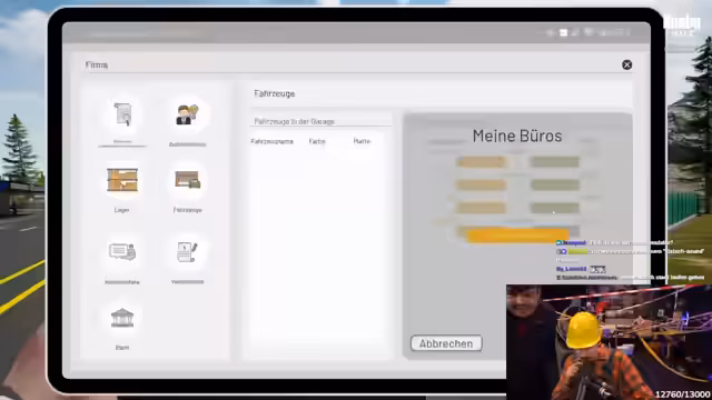 00:31:00Nachdem sich Seppel und Patze in das Spiel eingecheckt haben, beginnen sie mit der Erkundung ihrer Basis, dem Büro. Sie stellen fest, dass sie über erhebliche finanzielle Mittel verfügen und beschließen, Fahrzeuge zu beschaffen. Nach anfänglichen Problemen beim Abrufen der Fahrzeuge gelingt es ihnen, sich mit Autos und einem Anhänger auszustatten. Parallel dazu klären sie Spielmechaniken, wie das Akzeptieren von Missionen über den Vertrag-Button und das Anfordern von Berechtigungen, um das Spiel effektiv spielen und aufzeichnen zu können.