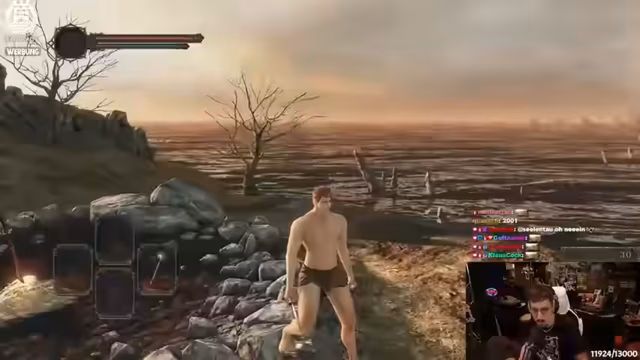 04:58:07Der Streamer trifft auf den NPC Pate und tötet einen Gegner. Er erhält einen Ring der Dornen, der bei erlittenem Schaden Rache übt. Er stellt fest, dass sein Morgenstern bereits zur Hälfte kaputt ist. Er überlegt, wie er weiterspielen soll und entscheidet sich, leveln zu gehen, um seine Werte zu verbessern. Er levelt Geschicklichkeit und Leben auf. Er betritt eine Villa und findet eine Truhe. Er kämpft gegen Gegner, die ihn parieren, und zündet eine Fackel an, um sich in der dunklen Umgebung besser zurechtzufinden. Er findet eine Scherbe und ein Seelengefäß, das es ihm ermöglicht, seine Attribute zurückzusetzen. Er findet Faros' Stein des Verkünders. Er erinnert sich an eine lustige Begebenheit mit Kalle, der ohne Estus und ohne Levelaufstieg durch ein Gebiet gespielt hat.