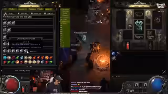 06:33:27Nachdem der Streamer eine verlorene Gegenstand aus der Gildenbank holte, wurde sein Charakter gefoltert und starb, was er als Witz über das Spiel kommentierte. Nach der Rückkehr setzte er seinen Weg fort und suchte nach einem neuen Unique-Ausrüstungsgegenstand, insbesondere nach einer Robe mit hohem Energy Shield und Resistenz. Der Streamer diskutierte über verschiedene Skill-Gems wie Frostbolt und Coldsnap, um seinen Frost-Build zu optimieren. Nach dem Erreichen von Level 10 plante er eine Umrüstung auf den Frostbolt-Spell für mehr Single-Target-Damage.