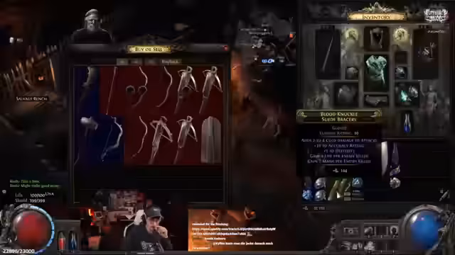 05:46:08Nach einem erfolgreichen Handel mit Karten in der Gildenbank, bei dem der Streamer im Austausch gegen Gifte zweistufige Karten erhielt, meldete sich ein Händler. Dieser verkaufte dem Streamer fortan nur noch Karten der höheren Stufen 4 und 5. Der Streamer reagierte frustriert auf dieses Verhalten und bat den Chat um zweistufige Karten, da er welche für den Fortschritt benötigte. Während eines Handels versuchte sein Gegner, ihm 0,5 Exalted statt eines vollwertigen Exalted zu verkaufen, was den Streamer als unseriös und ärgerlich empfand.