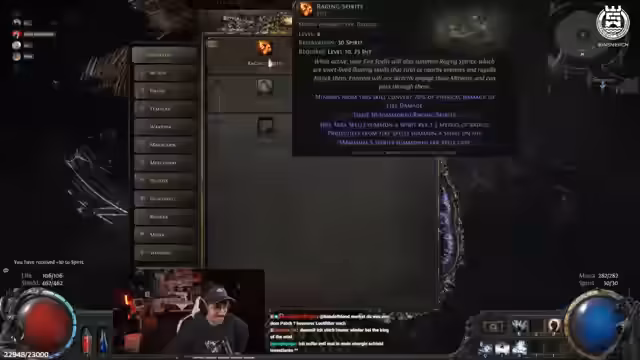 04:45:43Eine zentrale Phase des Streams war die intensive Diskussion mit der Community über verschiedene Builds und deren Stärken und Schwächen. Der Streamer befragte die Zuschauer nach Vorschlägen für gute Uniques oder Gegenstände, die das Leveln erleichtern könnten. Außerdem tauschte er sich über die Kombination von Skills wie Flamewall, Spark und Frost Nova aus und analysierte die Vor- und Nachteile verschiedener Spielweisen, wie zum Beispiel der Unterschied zwischen Melee- und Ranged-Kämpfern.