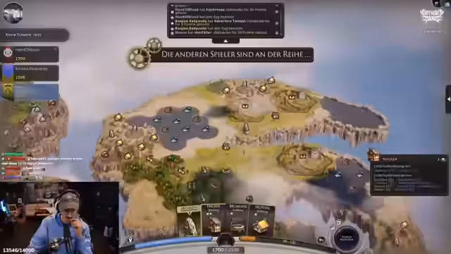 00:34:18Die Teilnehmer beginnen ein Multiplayer-Spiel von Terrascape, um die neuesten Funktionen zu testen. Das Spiel beginnt mit der Platzierung von Burgfrieden und der Auswahl von Decks für Ressourcen. Es kommt jedoch zu wiederholten Verbindungsabbrüchen, insbesondere bei Unartiger. Streamer und Spieler müssen den reconnecten und erklären die Grundmechaniken des Spiels, die das Platzieren von Gebäuden, das Kombinieren und das Sammeln von Punkten umfassen. Trotz der technischen Probleme ist das Spiel interessant.