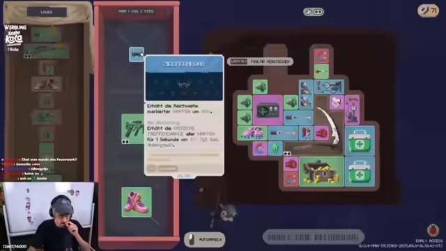 00:16:09Der Streamer kündigt an, im Endlos-Modus einen Tryhard-Run zu starten, mit dem Ziel, mehr als 69 Tage zu überleben. Er betont die Wichtigkeit, schnell den Bus zu füllen und priorisiert Benzin-Kanister. Er äußert den Bedarf an Attack-Speed, Dart-Pfeilen und einer Luftpumpe. Es wird diskutiert, ob die Gefahrenstufe im Spiel mit Kills oder mit der verstrichenen Zeit steigt. Er berichtet von positiven Erfahrungen mit dem Spiel auf dem Steam Deck. Im weiteren Verlauf des Spiels sucht er verzweifelt nach Rucksäcken, um sein Inventar zu erweitern, und muss Items wegwerfen, da er keine findet. Er spricht über die Inkonsistenz der Sense-Waffe im Nahkampf und testet verschiedene Items und Kombinationen, um seinen Build zu optimieren.