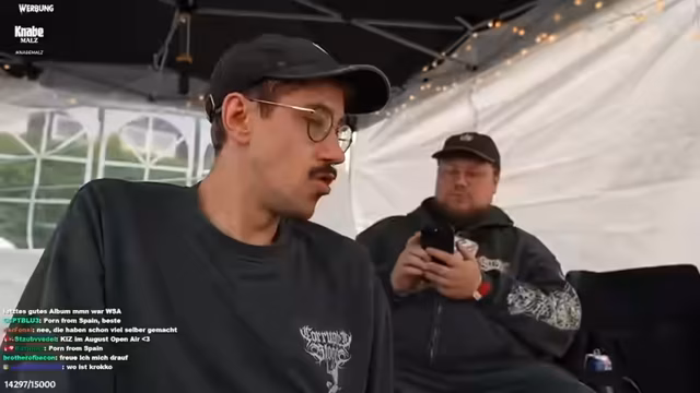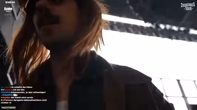 00:16:48Beim Erreichen des Festivalgeländes stellt sich das erste große Problem im Bezug auf die Live-Übertragung heraus. Die Hauptbühne, die sogenannte Mainstage, ist von Axel Springer (unter anderem Betreiber von Bild) gebucht. Das Unternehmen hat die Übertragungsrechte für diese Bühne gesichert und verbietet dem Streamer und seinem Team strikt, dort zu filmen oder zu streamen. Dadurch können die Zuschauer nicht die wichtigsten Acts auf der Hauptbühne sehen. Die anderen drei Bühnen dürfen jedoch problemlos gefilmt werden.