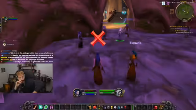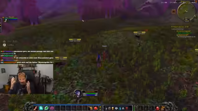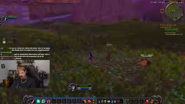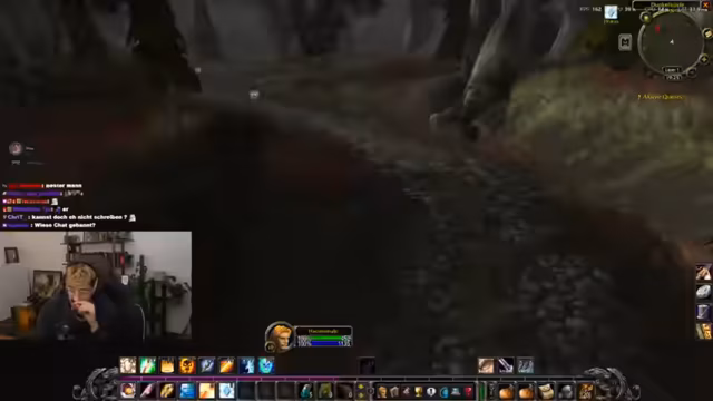 00:18:07Nachdem Kalle mit dem Spielen von WoW beginnt, äußert der Streamer wiederholt und mit Humor den Wunsch, eine Mutter "wegzumachen" – ein scherzhaftes Szenario, bei dem ein 16-jähriger Sohn morgens den Streamer als "Daddy" vorfindet. Dies unterstreicht die Gemeinschaft und die lockerere Stimmung im Chat, während Kalle offiziell als neuer WoW-Spieler begrüßt wird.