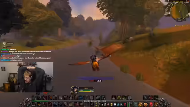 02:55:47Es entsteht eine langlebige Diskussion über den deutschen Film 'Der Wixxer', den der Streamer nicht kannte. Sein Chat reagiert überrascht und belehrend, da der Film Kultstatus hat. Der Streamer verweist auf WoW-Werbeclips, um den Trailer eines Events zu beschreiben, was zu einer unterhaltsamen Gegenüberstellung von Gaming- und Popkultur-Ästhetik führt. Nebenbei berichtet er von seinem Gameplay gegen einen Hunter und seine Gruppe kämpft gegen einen Boss, der die Gruppe fast komplett auslöscht, was zu einer hektischen Situation führt, in der der Streamer versucht, die Gruppe zu retten.