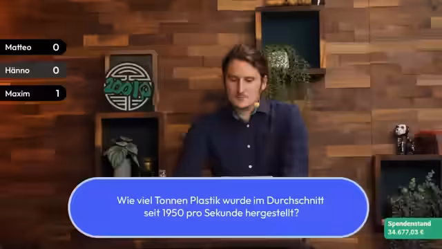 05:28:15Nach dem King of the Lan wird ein neues Format namens Silber ist Gold eingeleitet. Das Ziel ist es, in verschiedenen Spielen der Zweite zu werden, was die strategische Denkweise der Teilnehmer auf die Probe stellt. Das erste Spiel ist ein Quiz über Plastik in den Ozeanen, das die Spendenaktion für Sanamare bewirbt. Die Teilnehmer müssen die richtigen Antworten schätzen, nicht um zu gewinnen, sondern um den zweiten Platz zu belegen. Die Fragen sind komplex und das Metagame vertrackt, da die Absicht absichtlich zu verlieren, siegt.