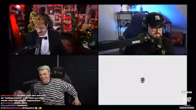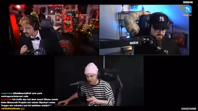 07:54:14Die Teilnehmerliste kommt auf die Website. Ein Dresscode („ekelhaft“) wird scherzhaft angekündigt. Todesfeiern werden mit Champagner im wöchentlichen Town-Hall-Meeting zelebriert. Bestätigt werden Termine: Fraktionsentscheidung morgen 18 Uhr, Eventstart am 27.12. um 12 Uhr. Streamer müssen Discord-Namen an Twitch anpassen.