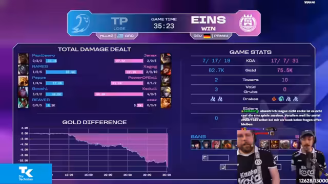04:04:22Nach dem frühen Sieg erläutern die Streamer die taktische Philosophie des Teams. Der Fokus liegt darauf, dem Kog'Maw ein sicheres Umfeld zu geben, damit er sich entfalten kann. In der Mitte kann er sicher mit seinem E-Springen agieren, während er auf der Botlane vom Support geschützt wird. Der Ezreal wird ebenfalls zum zentralen Angriffspunkt, der Druck ausüben und Objivte sichern kann. Diese Ausrichtung zielt darauf ab, die Schwächen der gegnerischenComposition gezielt auszuspielen.