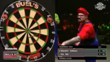 01:25:31Nils und Eddie eröffnen mit 72 Punkten. Krögi und Niklas kontern stark, Niklas trifft eine Single 14. Bei Eddie bleibt 62 Rest. Er wirft Single 14 und beendet sein leg. Niklas muss mit 18 Rest finishen. Er trifft Double 9 und gewinnt das Match für sein Team. Nils und Eddie scheidungen aus dem Turnier aus.