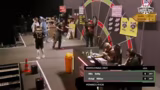 01:55:44Das Viertelfinale beginnt mit dem Duell zwischen No Way und Metashi gegen Philo und Ikimel. Der Fokus liegt auf den individuellen Wurftechniken: Metashi wirft mit einem hohen Bogen und sucht direkt das Bullseye, während No Way sich sehr entspannt und lässig präsentiert. Philo wird als Haupt-Entertainer identifiziert. Das Spiel ist von hohen Scores und hohen Durchschnittswerten geprägt. No Way und Metashi präsentieren eine starke, unaufgeregte Leistung. Sie gewinnen das Spiel, indem No Way einen schwierigen Finish auf die Single 2 mit sehr hoher Präcision tritt.