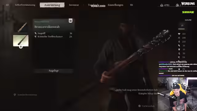02:33:45Der Streamer erkundet das Crafting-System, das es ermöglicht, neue Gewänder und Gegenstände herzustellen. Er kauft Materialien wie Garn und Goldstücke an Schreinen und sammelt Geistesessenz zum Leveln. Er vergleicht die verschiedenen Waffen-Optionen und stellt fest, dass es mögliche Upgrades gibt, die jedoch nicht wesentlich besser sind als die Standardausrüstung. Er kritisiert das Fehlen von customization-Optionen bei Waffen und Rüstung.