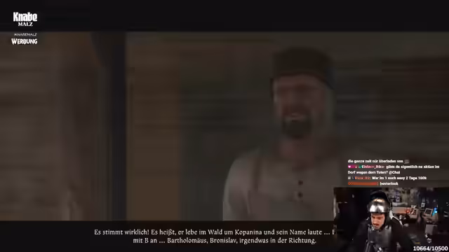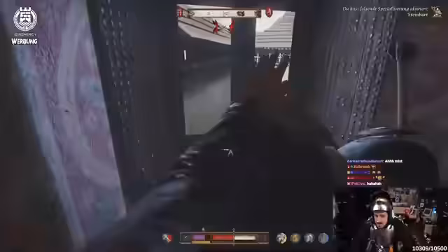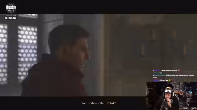 02:52:25Während der Infiltration trifft der Streamer auf eine Magd namens Katharina. Als er sie anspricht, wird sie misstrauisch und beschuldigt ihn, ein Dieb zu sein. Die Situation eskaliert schnell. Obwohl der Streamer versucht, sie mit Geschichten abzulenken, kommt es zu einem Streit. Die Magd ruft schließlich um Hilfe, was den Alarm auslöst und die Flucht massiv erschwert. Der Streamer muss nun unter tausend Augen einen Ausweg aus der Burg finden.