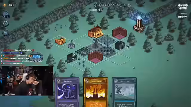 01:18:16Der Streamer fragt André von Sets of it Games, ob sich der Effekt der Gebäude bei jedem Level-Up wiederholt. Er experimentiert mit verschiedenen Spielmechaniken, wie dem Schmied und der Bibliothek, um seine Einheiten zu verbessern. Es wird diskutiert, wie oft die Bibliothek eine Chance hat, Verzauberungen zu duplizieren, und der Streamer versucht, die Effekte der verschiedenen Gebäude zu maximieren. Er entscheidet sich für die Überinvestition in Ritter, um deren Stats zu boosten, und wählt Upgrades, die Flächenschaden und zusätzliche Felder freischalten. Er überlegt, welche Einheiten er weiter verbessern soll und fragt Andrej, welche Einheit besser ist.
