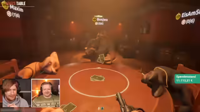 00:44:41Es gibt technische Schwierigkeiten bei der Installation und dem Starten des Spiels Liar's Dice. Niklas wird aufgefordert, sich zu konzentrieren, während andere bereits 10.000 Euro gespendet haben. Turi soll anmoderiert werden, ist aber noch nicht da. Marco hat das Spiel bereits. Es wird festgestellt, dass der Faker erneut ein großes E-Sport-Event in League of Legends gewonnen hat. Es wird über eine Pre-Show mit Linking Park diskutiert. Die Teilnehmer versuchen, sich im Spiel zu verbinden und laden Freunde ein. Es gibt Probleme mit den Accounts und Einladungen. Währenddessen kommentiert Maurice Weber das Geschehen. Die Regeln von Liar's Dice werden erklärt, wobei es darum geht, höher zu bieten und die anderen zu entlarven, wenn sie lügen. Es wird eine Testrunde vereinbart, um das Spiel besser zu verstehen. Es gibt Schwierigkeiten, Freunde im Spiel zu finden und einzuladen. Schließlich sind alle Teilnehmer in der Lobby, und es wird ein Testlauf gestartet, um die Regeln zu verstehen.