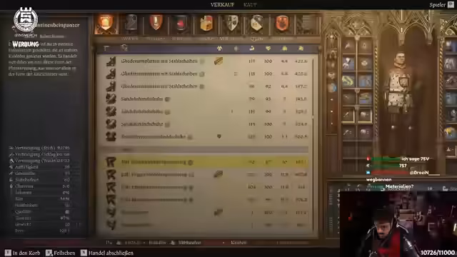 01:25:28Der Streamer betritt das Spiel Kingdom Come Deliverance 2 und muss sich erst in die Steuerung und die Mechanik wiederfinden. Er entscheidet sich für einen spezifischen Charakternamen und stellt das Aussehen seiner Rüstung ein. Dabei stellt er fest, dass das Visier des Helmes sein Kinn gegen den Kinnschutz drückt und die Bewegung stark einschränkt. Nach einigen Tests, bei denen er den Brustpanzer auszieht, um die Bewegungsfreiheit zu erhöhen, beschließt er, den Helm wegzulassen, um ein angenehmeres Spielerlebnis zu gewährleisten.