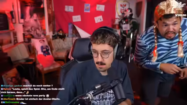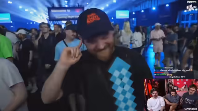 04:46:12Der Übergang zur eigentlichen Show beginnt. Ein professioneller Warm-Up-Act pusht die Menge, woraufhin der Streamer und seine Reporter vor Ort reagieren. Dennis zeigt sich unbeeindruckt und lässt sich nicht vom Applaus der Crowd anstecken. Der Streamer selbst bleibt kritisch und misstrauisch gegenüber dem inszenierten Event-Geschehen. Die offizielle Show startet und der Streamer gibt letzte Anweisungen an sein Team, wie die Kameraführung und der Umgang mit Getränken zu gestalten sind, was für eine lockere, unkonventionelle Berichterstattung sorgt.