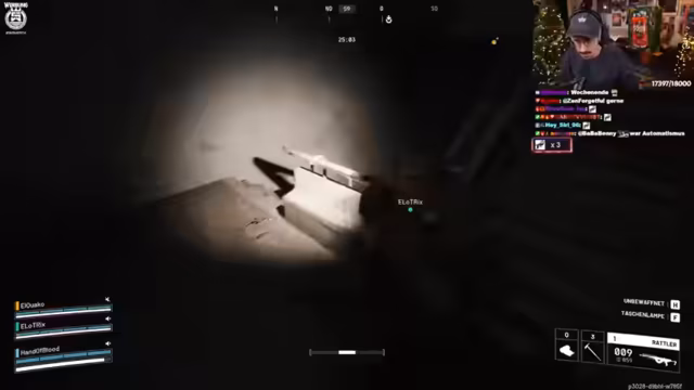 03:47:18Im Spiel 'Arc Raiders' spielt der Streamer mit anderen Leuten, wobei er betont, dass er bei Nacht keinen PvP wünscht. Die Kooperation im Chat verläuft zunächst freundlich, mit Versprechen, sich nicht zu schießen. Der Streamer und sein Team koordinieren sich, um einen schweren Gegner zu besiegen. Trotzdem kommt es zu Spannungen, als der Streamer von einem anderen Spieler attackiert und zurückgelassen wird, was er als unfaire Behandlung ansieht.