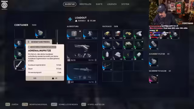 05:24:16Der Streamer drückt den Wunsch aus, das Prestige-System zu nutzen, um wieder das Gefühl von Progression zu erleben. Es fehlt ihm das Gefühl beim Looting, ähnlich wie in Strikespielen. Er hat das Bedürfnis, sein Inventar mit Waffen und Items zu füllen, und äußert besonders den Wunsch nach einem goldenen Backpack. Er ist sehr in das Spiel eingetaucht und hofft auf zukünftige Inhalte wie neue Maps und Waffen, um das Spielerlebnis weiter zu bereichern.
