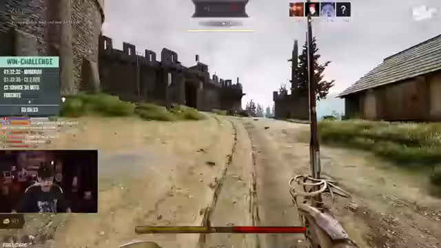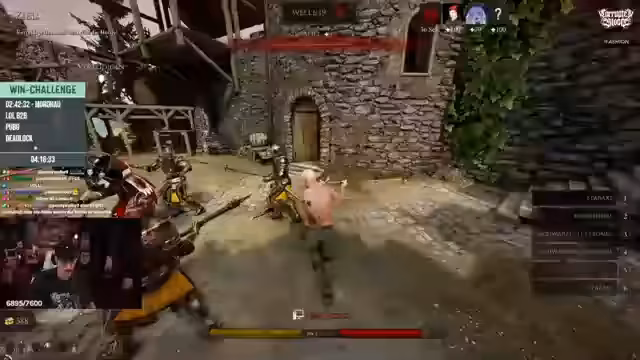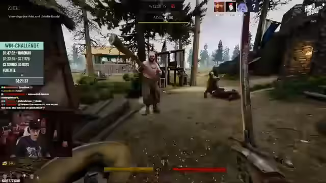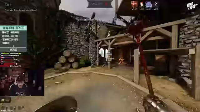 03:35:57Im weiteren Verlauf der Challenge wechselt ein Streamer zur Armbrust, die als extrem stark im späteren Spielverlauf gilt. Die anderen Streamer spielen weiterhin im Nahkampf. Die Team-Koordination wird immer wichtiger. Ein Streamer positioniert sich auf einer Holzhütte und agiert als Fernkämpfer, während andere den Adel verteidigen. Es wird strategisch agiert, um Gegner anzugreifen und Ressourcen wie Feuerbomben effektiv einzusetzen. Trotz guter Zusammenarbeit wird es in den späteren Runden immer schwieriger, den Adel am Leben zu halten.