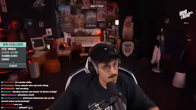 06:41:57Während des Streams unterhalten sich die Streamer über verschiedene Themen. Dazu gehören die deutsche Twitch-Szene, Personenkult und Skandale. Es gibt auch persönliche Einblicke, wie zum Beispiel die Ernährungsgewohnheiten während des Streamings, und eine Anfrage an einen der Streamer, League of Legends beizubringen.