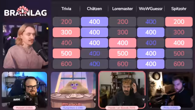 05:39:01Das Quiz endet mit Mitashi als Sieger (7.550 Punkte), gefolgt von Philly und Max. Handofblood reflektiert den reibungslosen Ablauf dank Vorbereitung durch Flo und der Community. Er kündigt an, sich nun auf das anstehende WoW-Event mit Hachi zu konzentrieren, und dankt den Zuschauern für die dreieinhalbstündige Teilnahme.